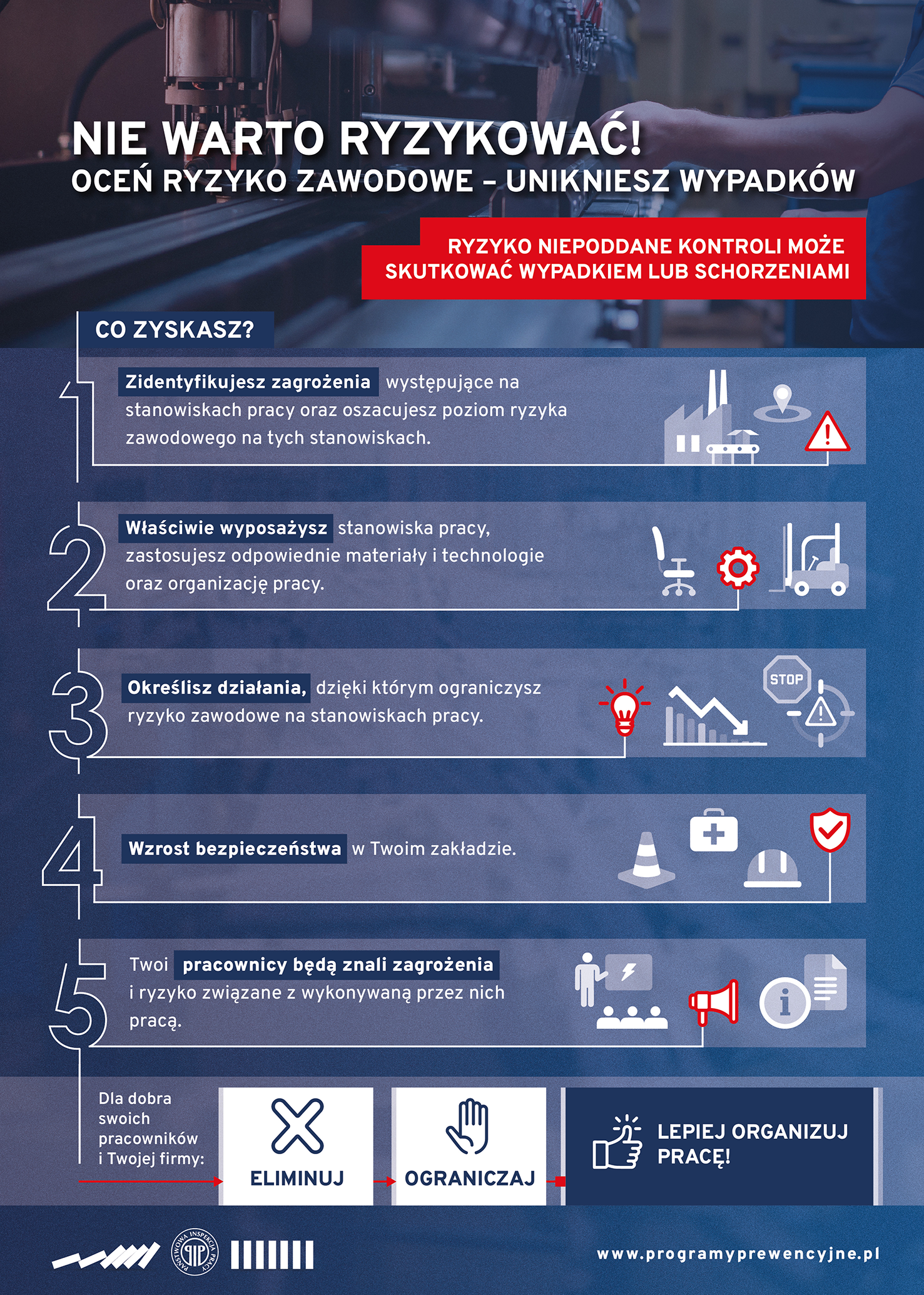 Prezentujemy materiały, które przygotowaliśmy w związku z kampanią „Bezpieczeństwo pracy zależy od Ciebie”. Jeśli chcieliby Państwo wykorzystać nasze materiały w promocji bezpieczeństwa pracy w swojej firmie zapraszamy do kontaktu: Ten adres pocztowy jest chroniony przed spamowaniem. Aby go zobaczyć, konieczne jest włączenie w przeglądarce obsługi JavaScript.